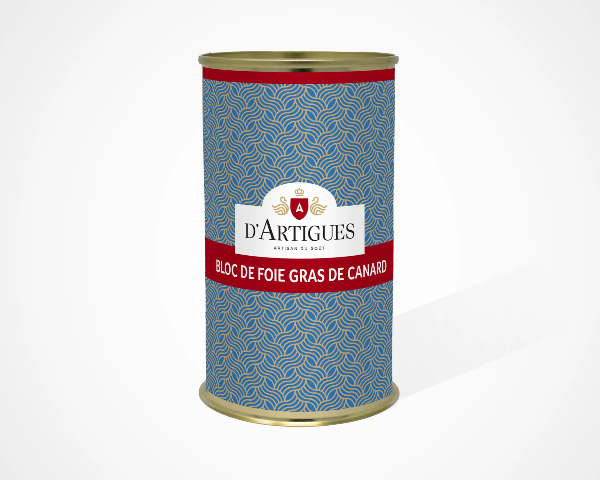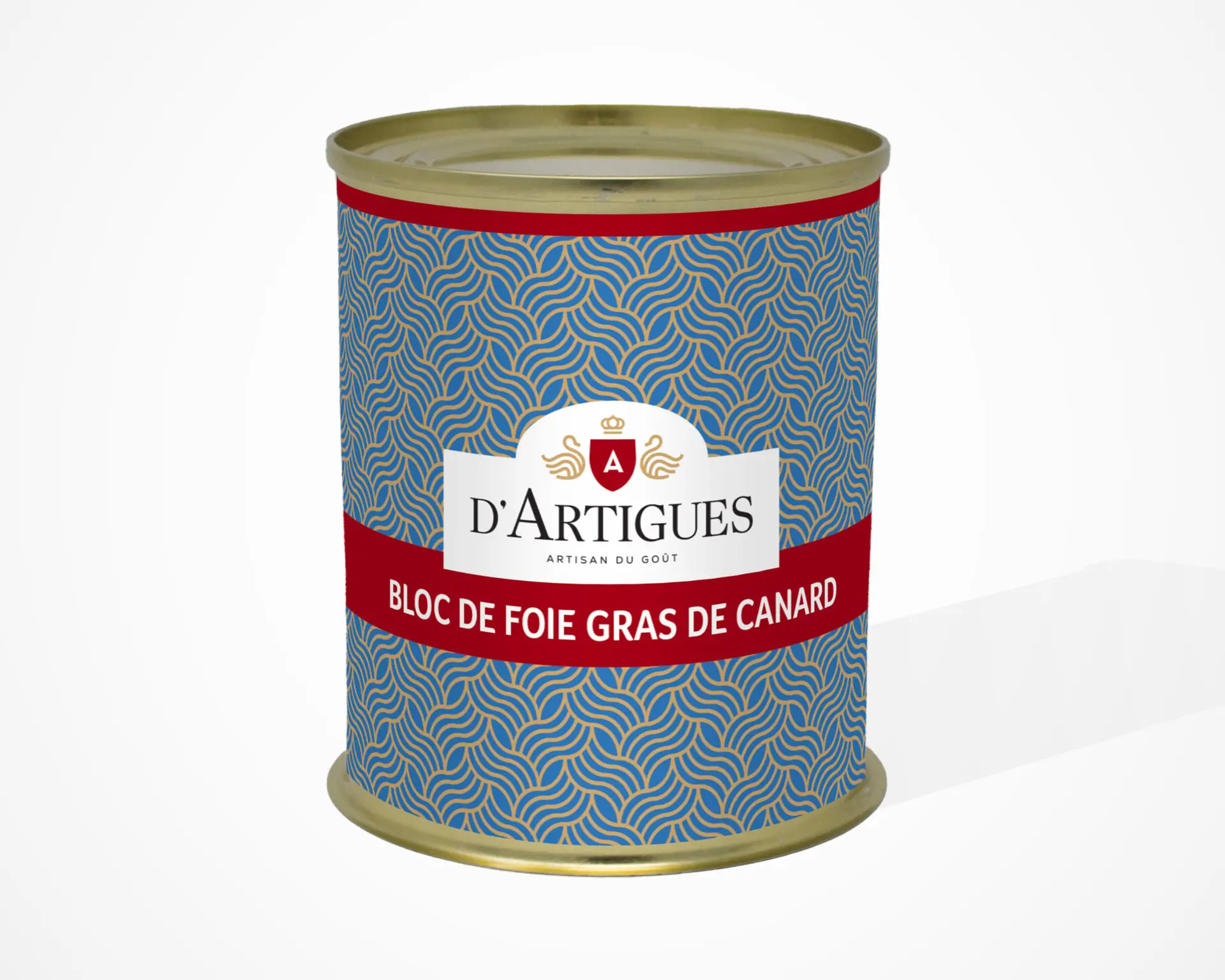 Savourez notre Bloc de Foie Gras de Canard TRADITION en boîte, un produit raffiné élaboré à partir de foies gras de canard IGP Sud-Ouest, garant de la qualité supérieure de nos produits.